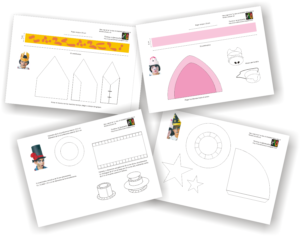 Los moldes de gorros y vinchas son muy útiles para hacer actuaciones en la escuela o en fiestas populares o para utilizar en tus disfraces en cualquier momento.